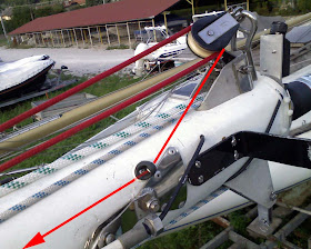 J'ai marque quelques lignes de référence à suivre pour faire ma couture. J'ai aussi rajouté un renfort en Dacron sur la partie 'point de drisse'.