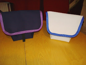 Voici deux sacoches que j'ai cousu ce matin. Je continue à dessiner des patrons pour tout type de sac(oche)s. Ces deux sacs mesurent 28cm de large et 20cm de haut. Pour l'instant il n'y a pas de doublure, mais c'est prévu pour mes sacs de 'production'. En plus, je compte changer de tissu en utilisant du Cordura. Et j'ai encore quelques réglages à faire sur la machine mais je suis bien parti! :)
