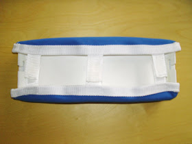 On coupe une longueur de l'élastique qui dépasse un peu les bords. On fera 2 ourlets avec de l'élastique enfilé dedans (à droite et à gauche). Ces ourlets se positionneront sur le haut et le bas du pare-battage.