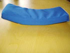 Et un peu de couture bien sûr! J'ai confectionné 2 housses de dossiers de filière. Dans la photos ci-dessous, on voit les dossiers en plastique. Peu confortable quand on s'appuie dessus, j'ai mis un morceau de mousse (matelas de camping) pour plus de confort.
